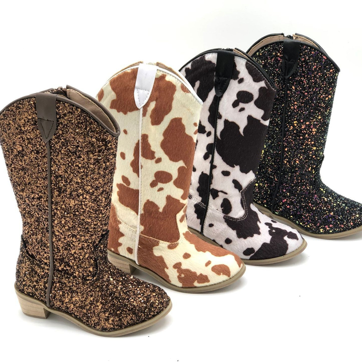 Snelle Verzending Rts Glitter Koe Meisje Laarzen Western Koe Print Ridder Laarzen Kids Meisjes Sparkle Schoenen